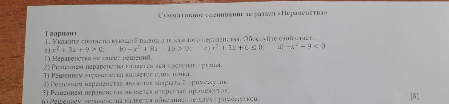 Укажите соответствующий вывод для каждого неравенства. Обоснуйте свой ответ.