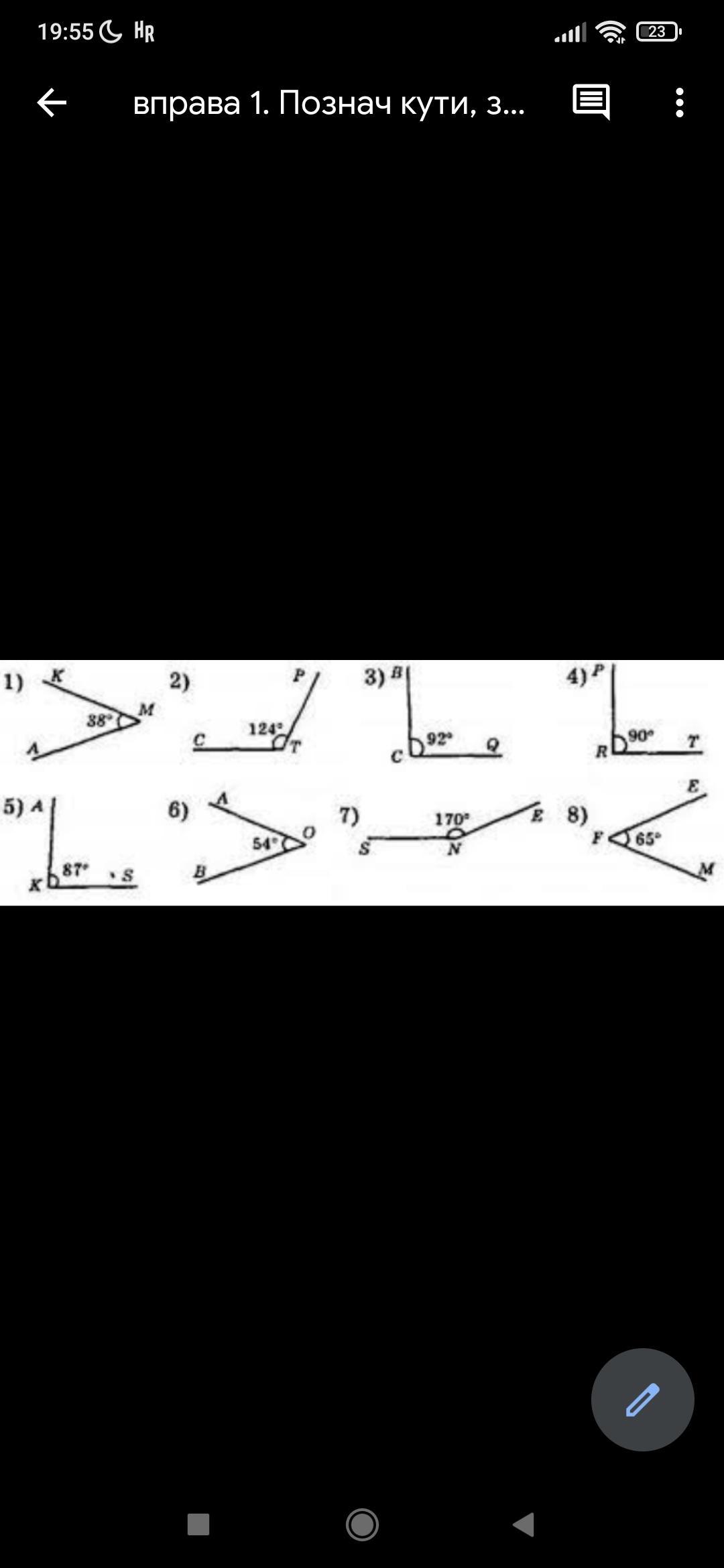 1) гострий 2) Тупий 3) тупий 4) прямий 5) гострий 6) гострий 7) тупий 8) гострий