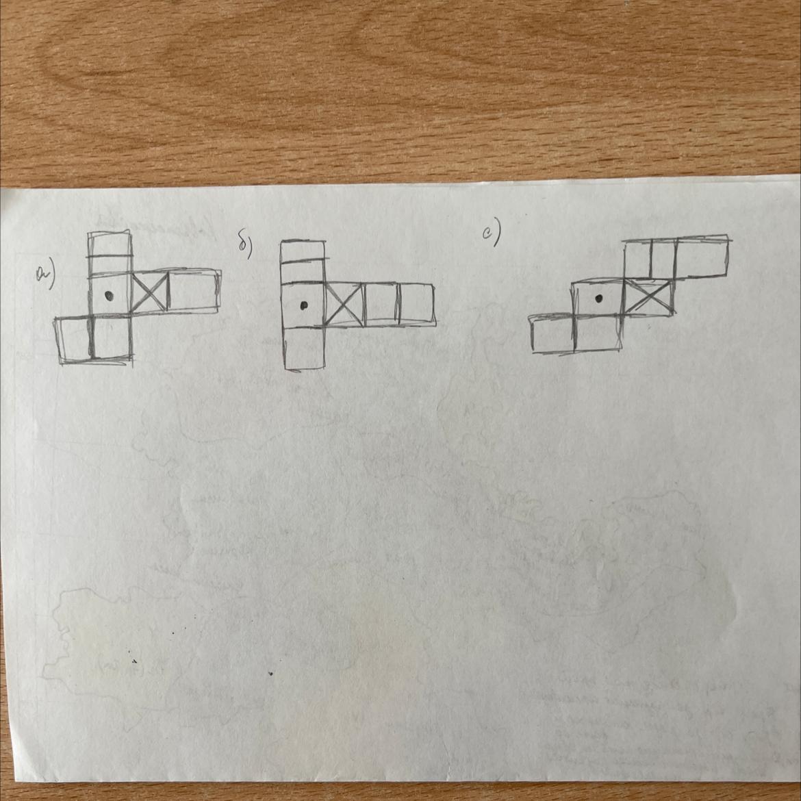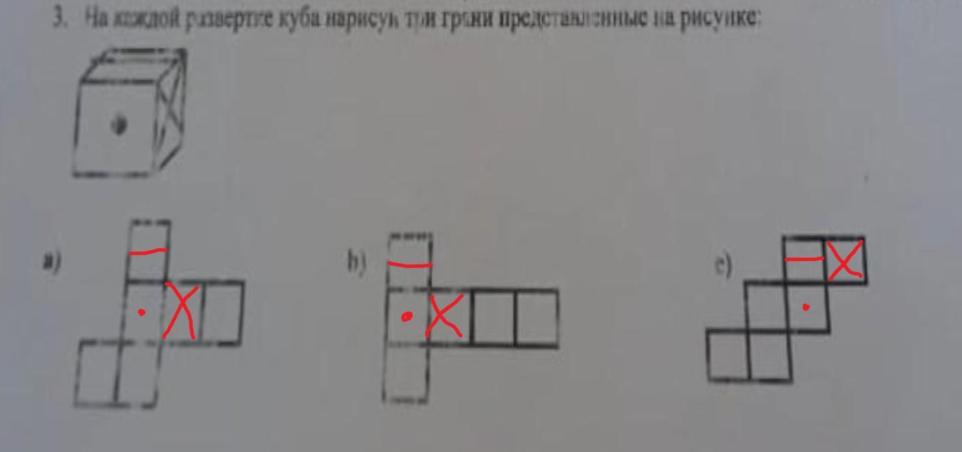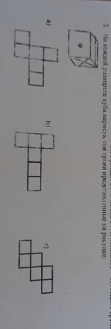 3.На каждой развертке куба нарисуй три грани куба представленные на рисунки.
