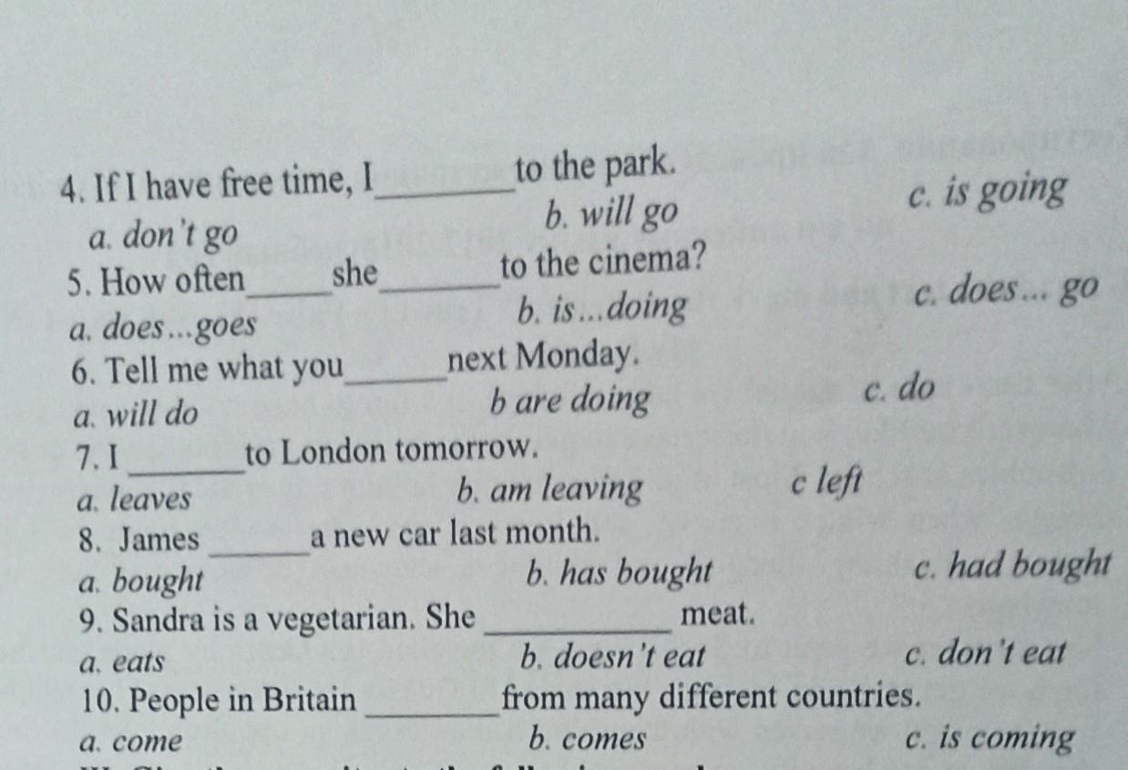 3. My mother____ at a hospital. She is a nurse. a works b. is working c. writing c. does working