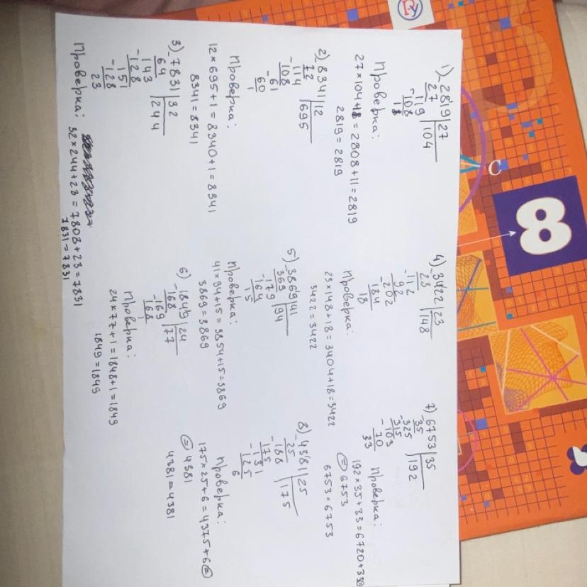 ВЫПОЛНИТЕ ДЕЛЕНИЕ С ОСТАТКОМ ИПРОВЕРТЕ РЕЗУЛЬТАТ: 2819/27 8341/12 7831/32 3422/23 3869/41