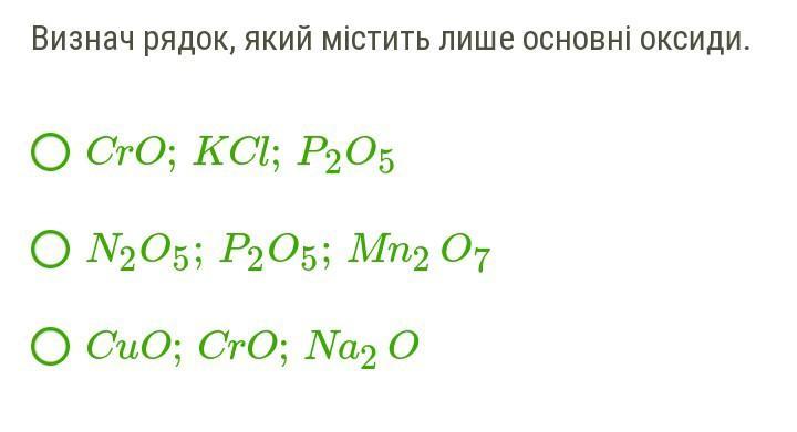 Ответ: третій рядок CuO;CrO;Na2O;