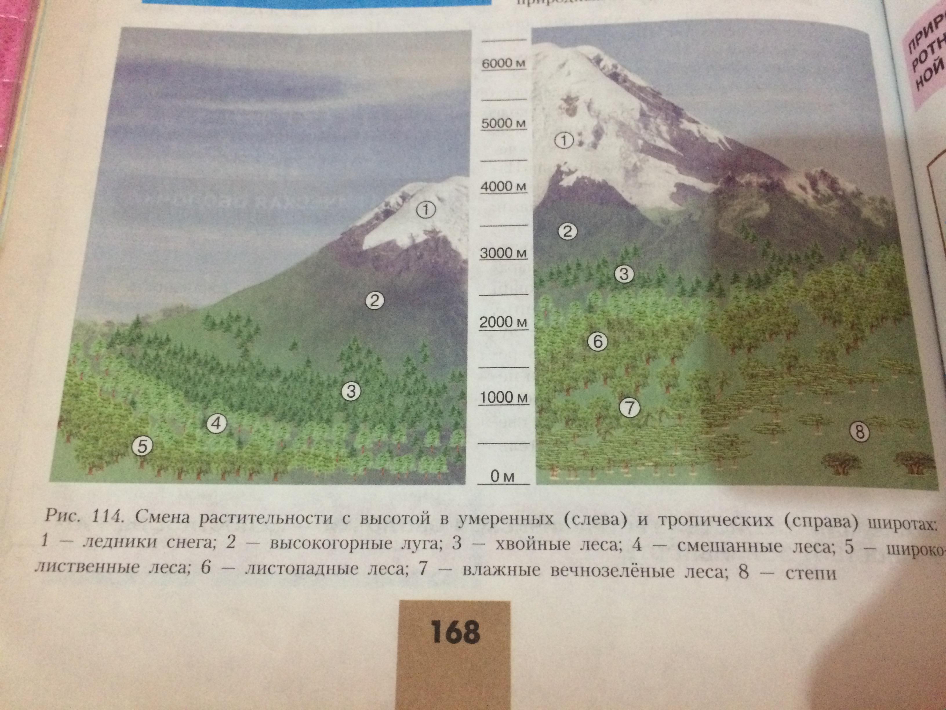 Объяснение: так как высота влияет на климать и чем выше тем влажнее, поэтому там так много растительности