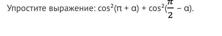 Упростите выражение: cos²(π + α) + cos²(П/2-a)