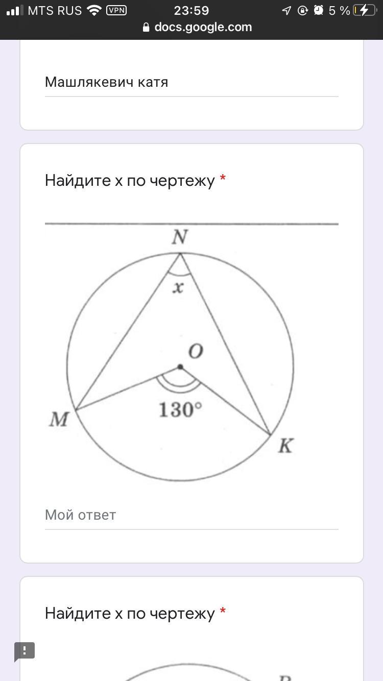Вписаний кут MNK дорівнює половині центрального кута MOK