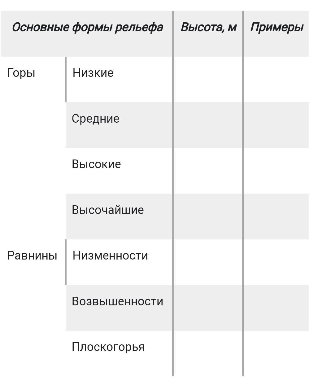 пример: Алтай,Анды,Кордильеры