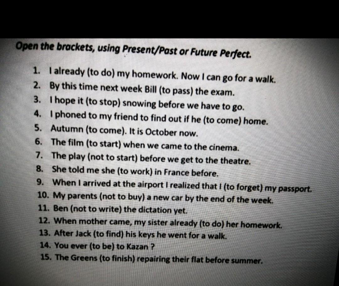 9. When I arrived at the airport I realized that I had forgotten my passport.