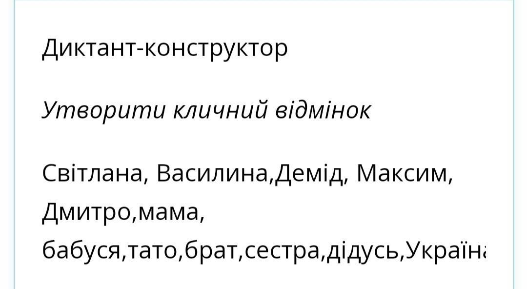 Світлано, Васелино, Деміде, Максиме, Дмитре, мамо, бабусе, брате, сестро, дідусе, Україно