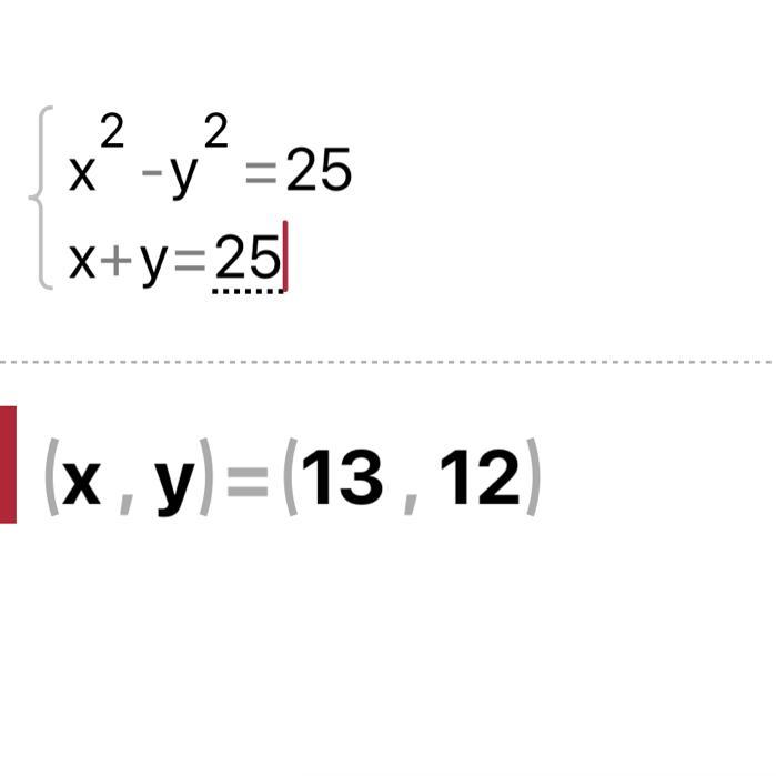 Разность квадратов двух натуральных чисел равна 25, а сумма этих чисел тоже равна 25. Найдите эти числа