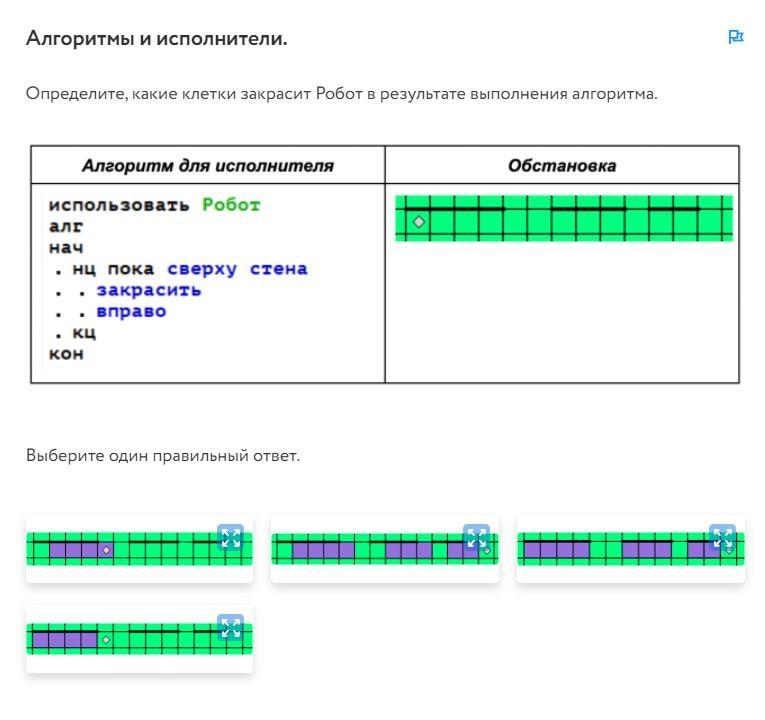 Теперь мы оказались в том промежутке, где нет стен, соответственно, цикл закончился. Результат: робот закрасил первые 4 клетки и стоит на пятой.