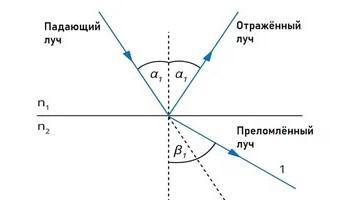 Свет, то есть электромагнитная волна в диапазоне от 380 нм до 780 нм, достигая границы сред, может претерпевать два явления: отражение и преломление (рис. 1.).