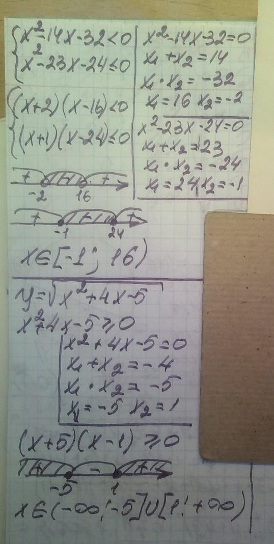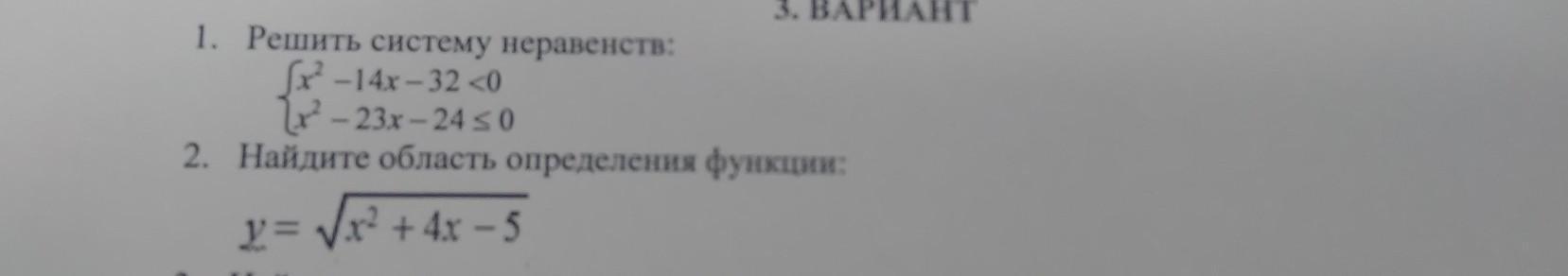 1. Решить систему неравенств: Sx² – 14% - 320 2x² – 23x – 24 50 2. Найдите область определения функции: 2 у= (х + 4х – 5