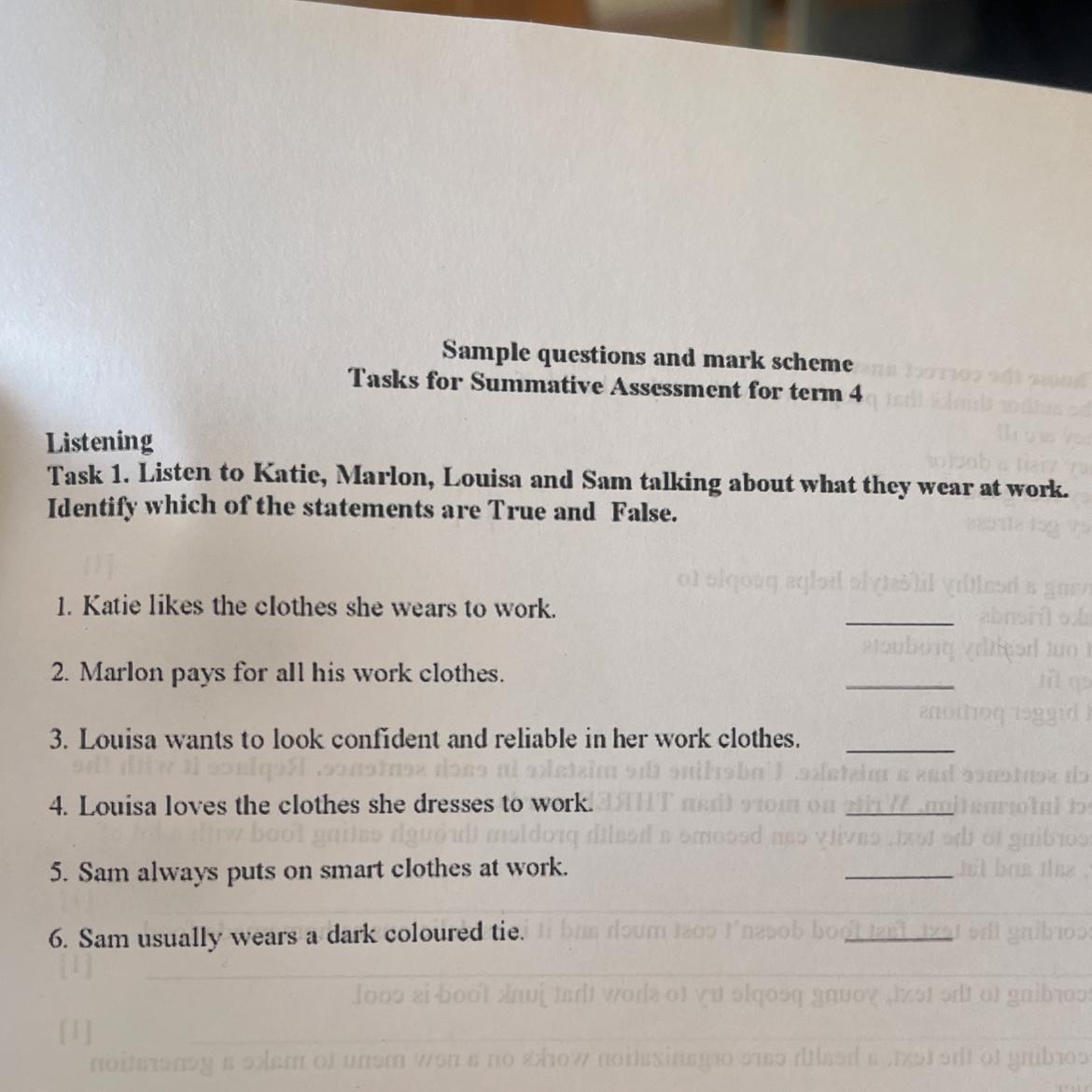 Task 1. Listen to Katie, Marlon, Louisa and Sam talking about what they wear at work.