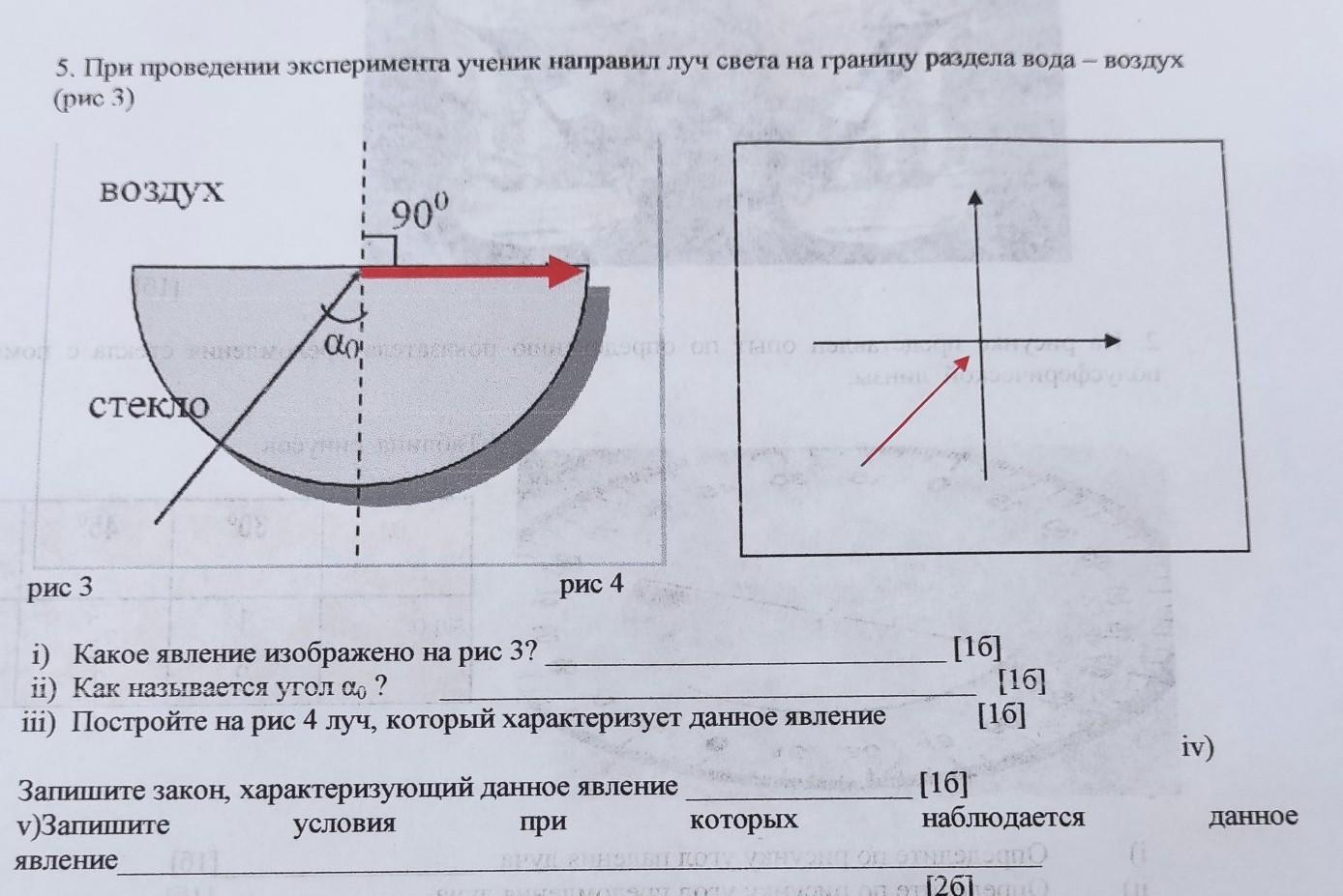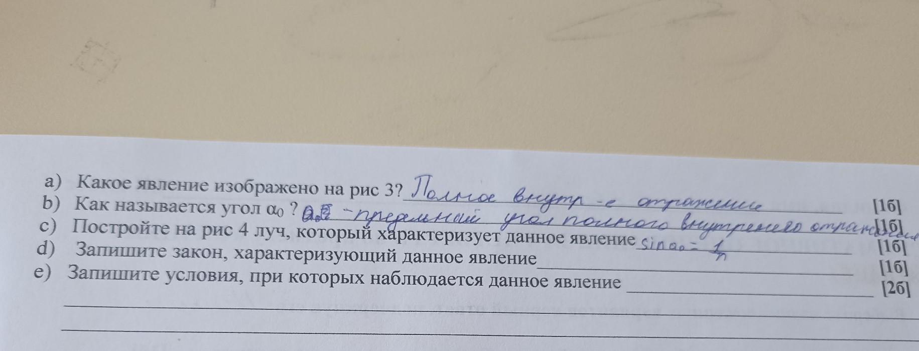 [16] i) Какое явление изображено на рис 3? ii) Как называется угол со ? іш) Постройте на рис 4 луч, который характеризует данное явление [16] [16] iv) Запишите закон, характеризующий данное явление v)Запишите условия при которых [16] наблюдается данное Явление ТО са со било [26] но мето на аналог,