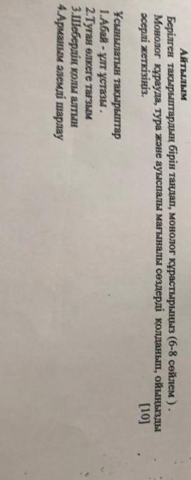 Абай ұлы ұстазым. Абай Құнанбаев 1845 жылы туды 1904 жылы қайтыс болған. Абай атамыздың өте көп өлеңдері бар. Және де қара сөздері өте көп бар. Абай кунанбаев ол аудармашы ақын ағартушы философ сөзгер саяси қайраткер болған .