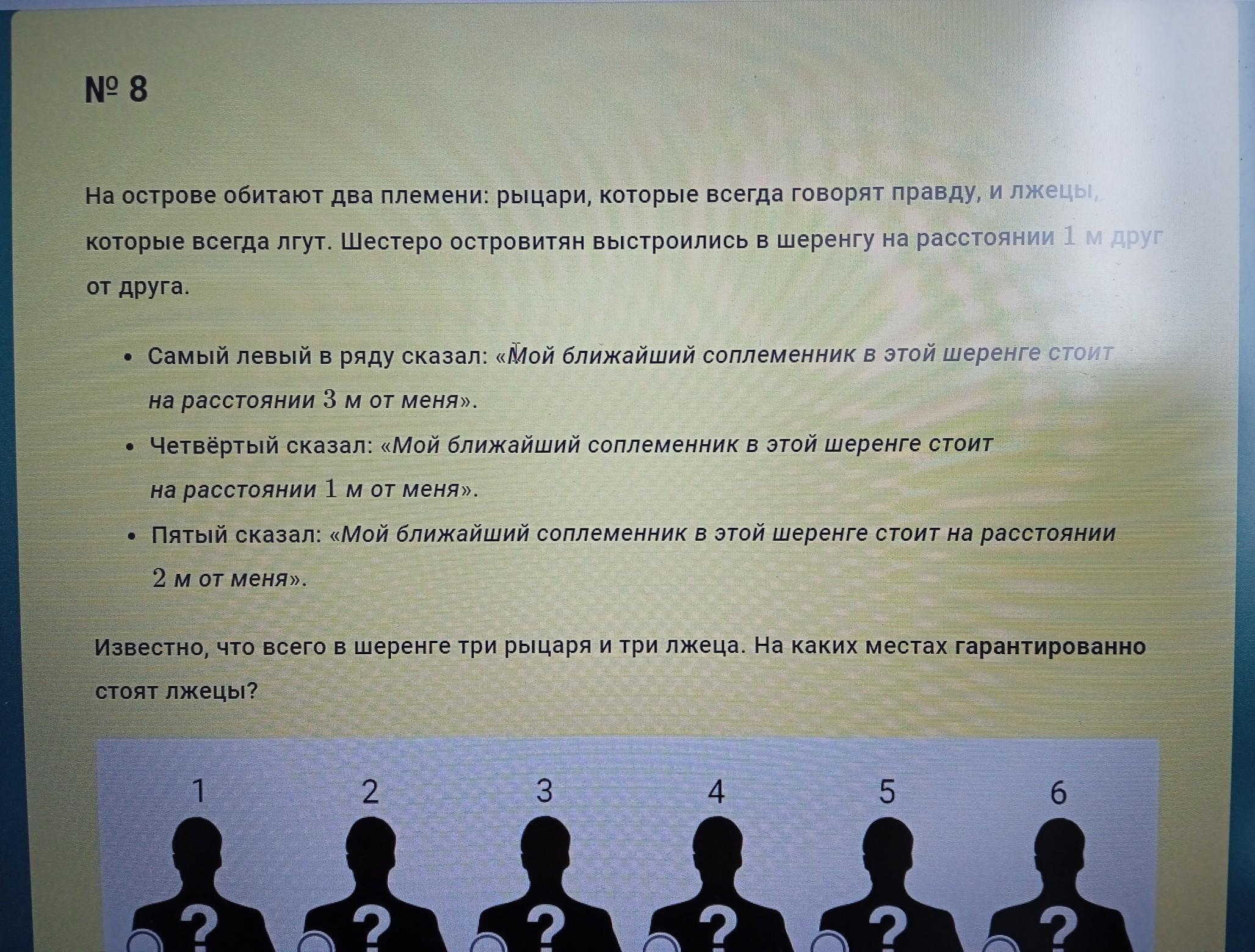 1 лжец 4, 5 рыцари т.к. они оба подтвердили что 3 их сопляменник но а 1 го никто не признал