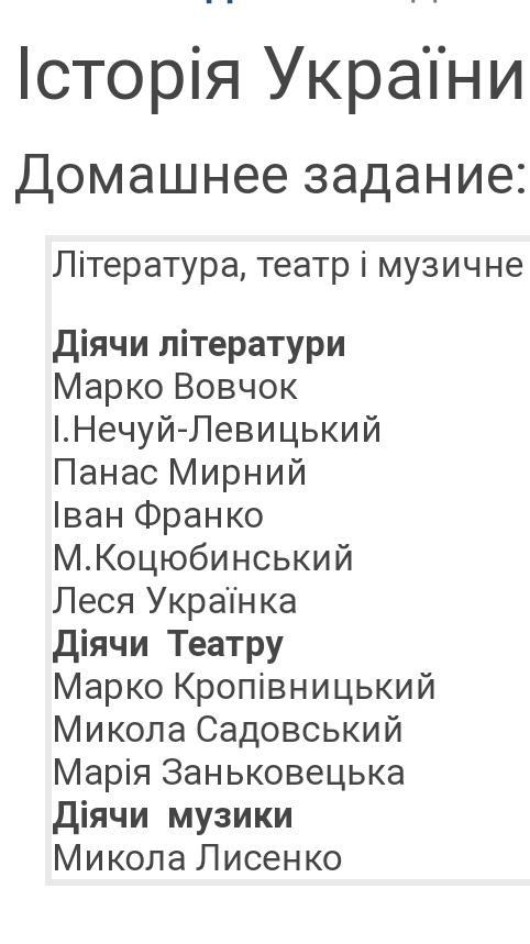 діячі літератури: Вовчок нечуй Левицький мирний Франко Коцюбинський Леся Українка проте багато з цих постатей займались і музикою і були в театрі