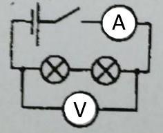 Амперметр (А) включается в цепь последовательно с нагрузкой, а вольтметр (V) параллельно.