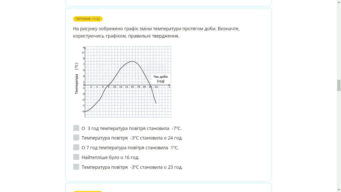 Помогите плис плиис-На рисунку зобрежено графік зміни температури протягом доби. Визначте, користуючись графіком, правильні твердження.
