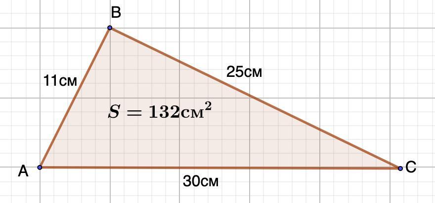 АВ = 11 см; ВС = 25 см; АС = 30 см.