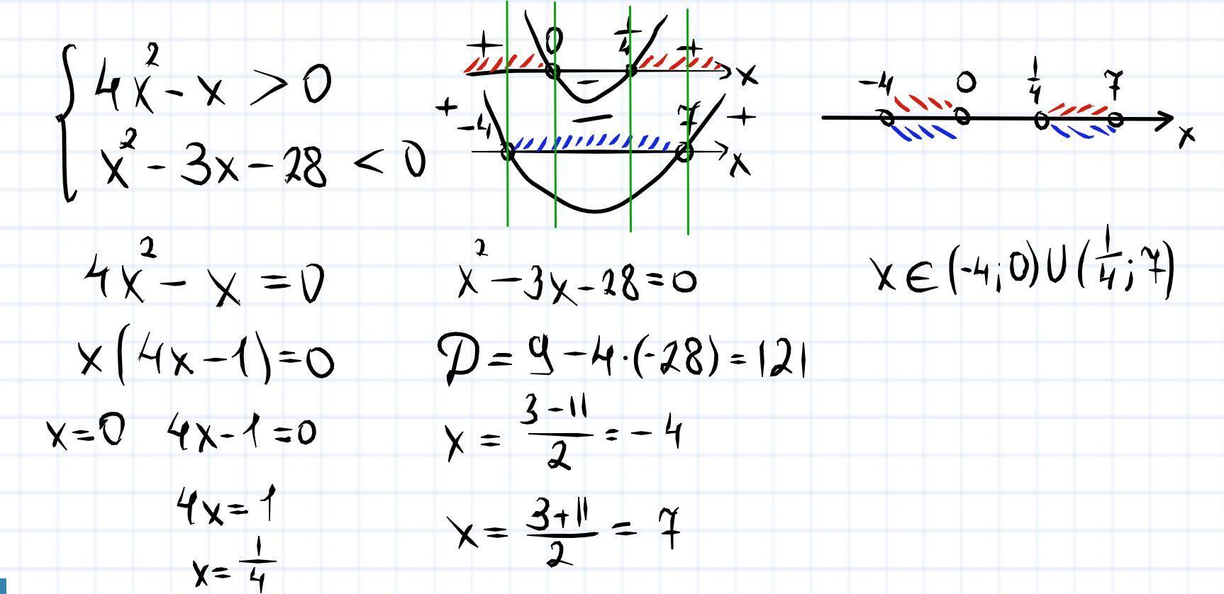 Объеденим решения и найдем ответ, т.к. решение или те х которые можем подставить должно быть верным для 1 и 2го, т.е. обращать неравенство в верное.