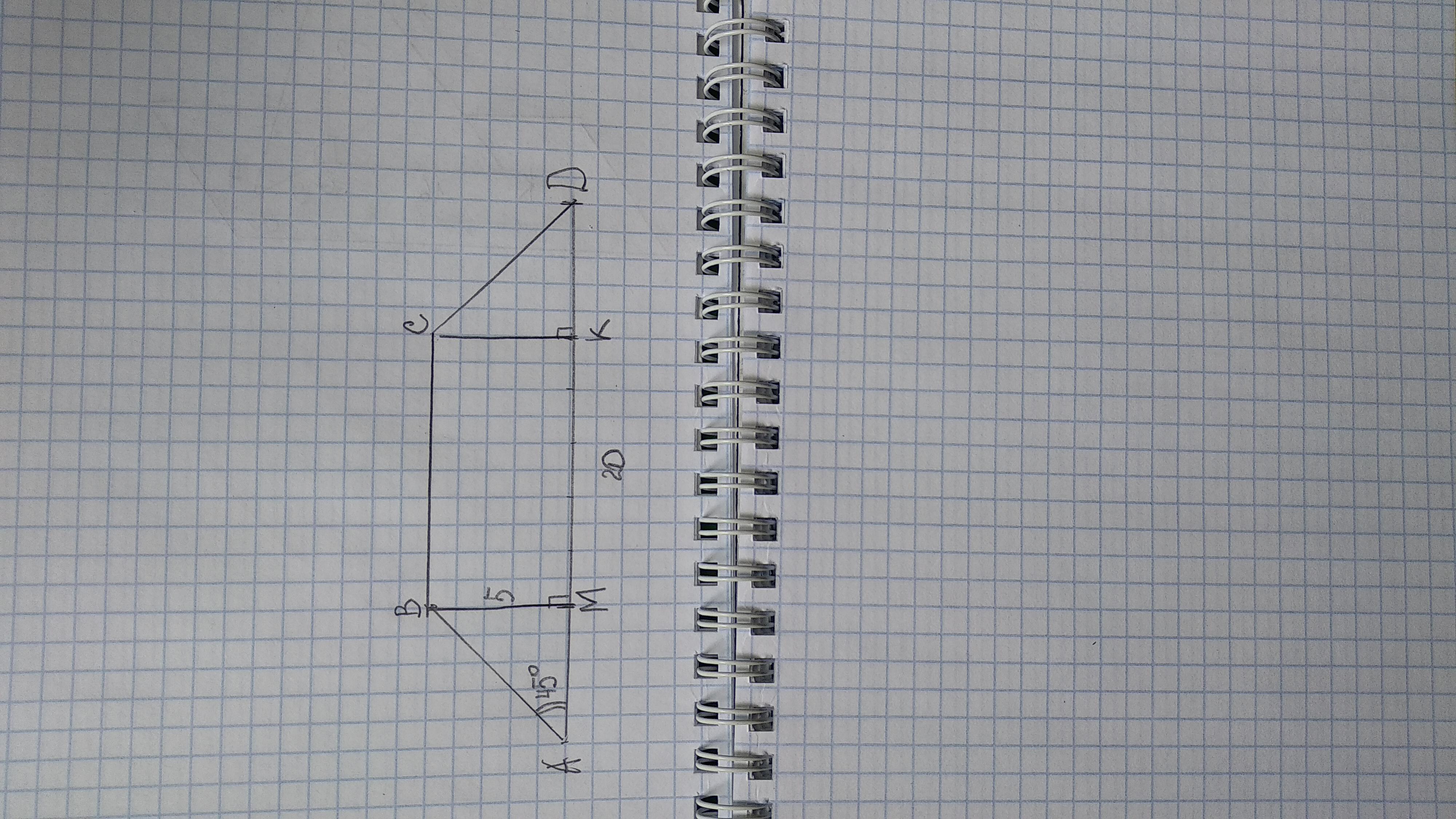 т.к. ∠ВАМ=45°, то и ∠АВМ=45°, т.к. сумма острых углов в прямоугольном ΔАВМ равна 90°, тогда АМ=ВМ=5 см, если опустить СК⊥АD, К∈AD, тогда МК=ВС=(20-2*5)=10(см)