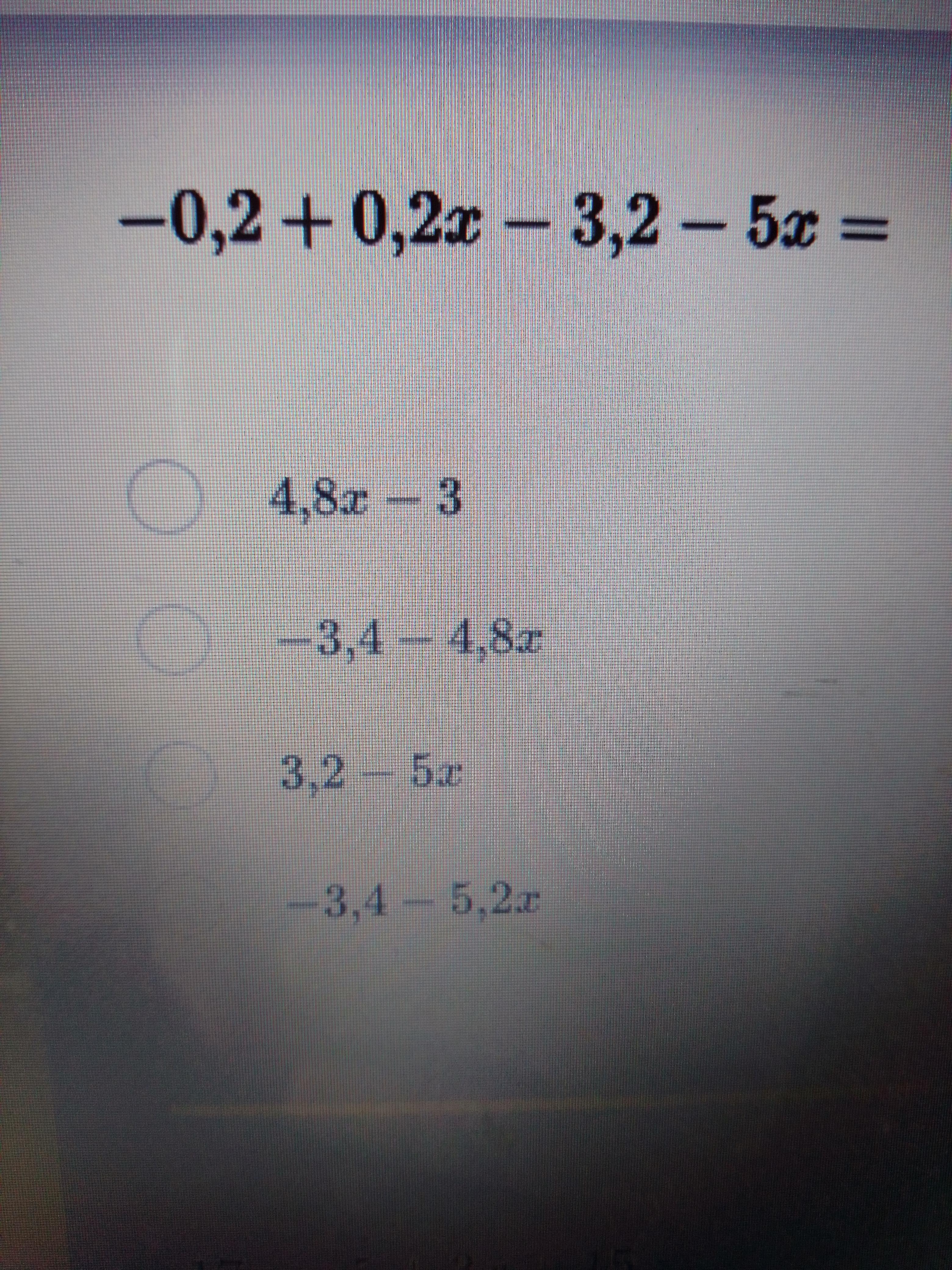 -0,2+0,2х-3,2-5х= -0,2-3,2+0,2х-5х= -3,4 -4,8х