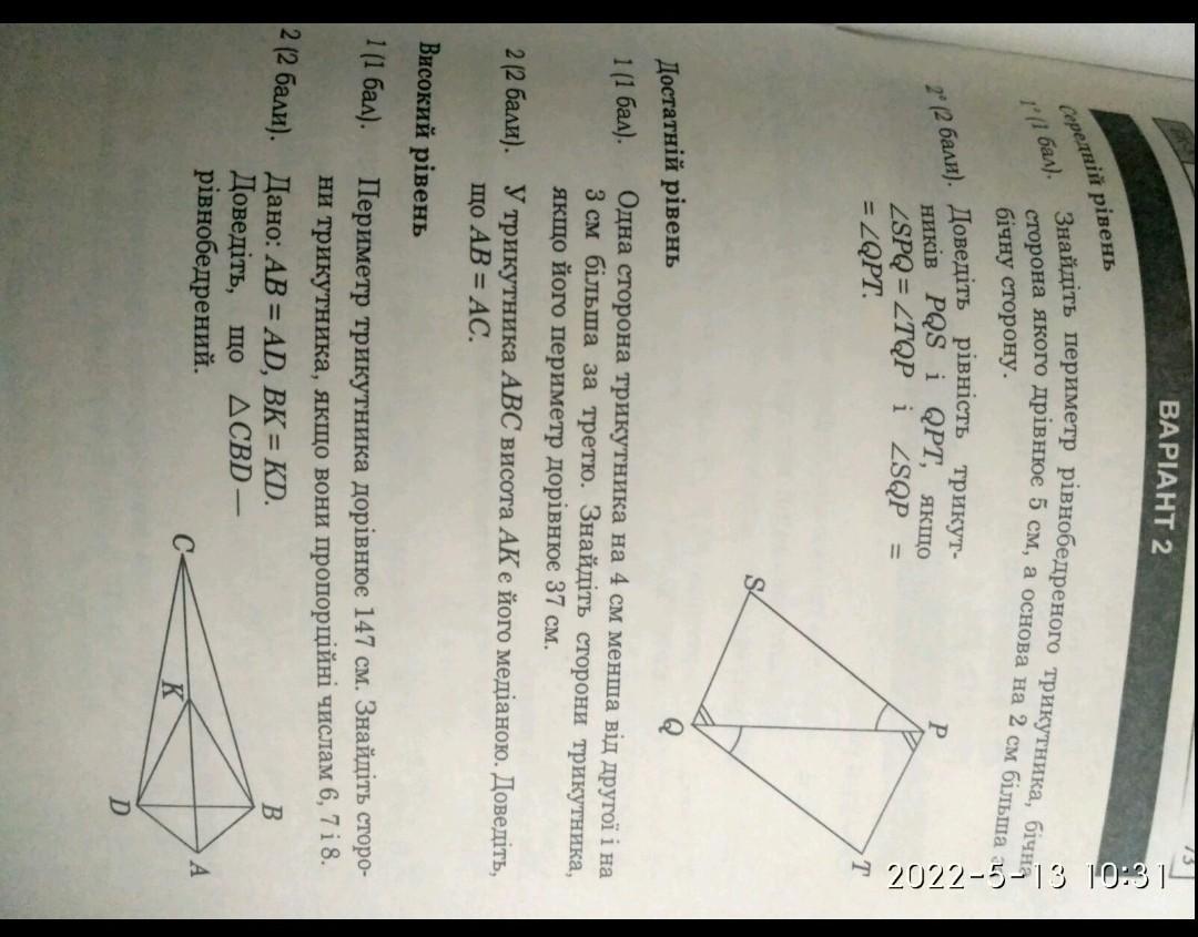 ∠ВАK=∠DAK ; АС - общая, AB=AD то по первому признаку равенства треугольников треугольники ABC и ADC равны ⇒ CB=CD⇒ треугольник CDB - равнобедренный