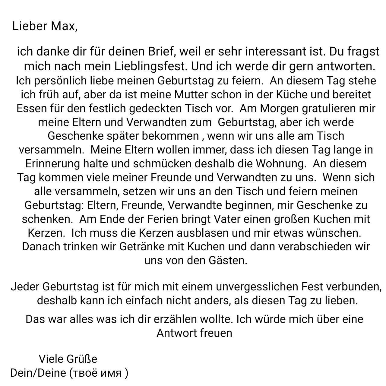 Schreiben Sie an Ihren Freund / an Ihre Freundin einen Antwortbrief. Erzählen Sie in