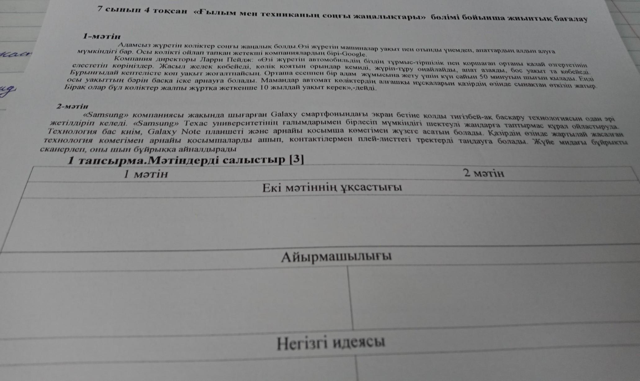 айырмашылық:бірінші мәтін де көліктер ірі зат туралы, екінші мәтін де ұялы телефон кіші зат туралы