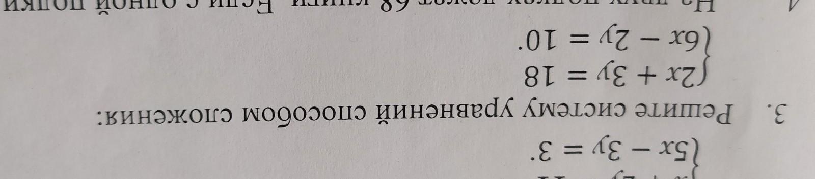 (5х — Зу = 3* Решите систему уравнений способом сложения: (2x + Зу = 18 (6x - 2y = 10 - На дRY — памагите пж дам 100бал