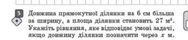 Пусть длинна прямоугольника х, тогда ширина х-6