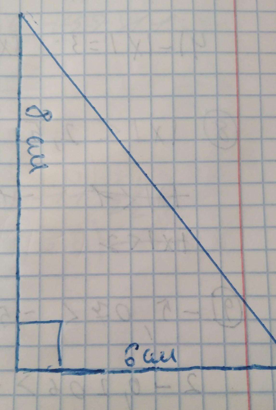 Построй прямоугольный треугольник со сторонами, прилегающими к прямому углу, 6см и 8 см. Срочно!