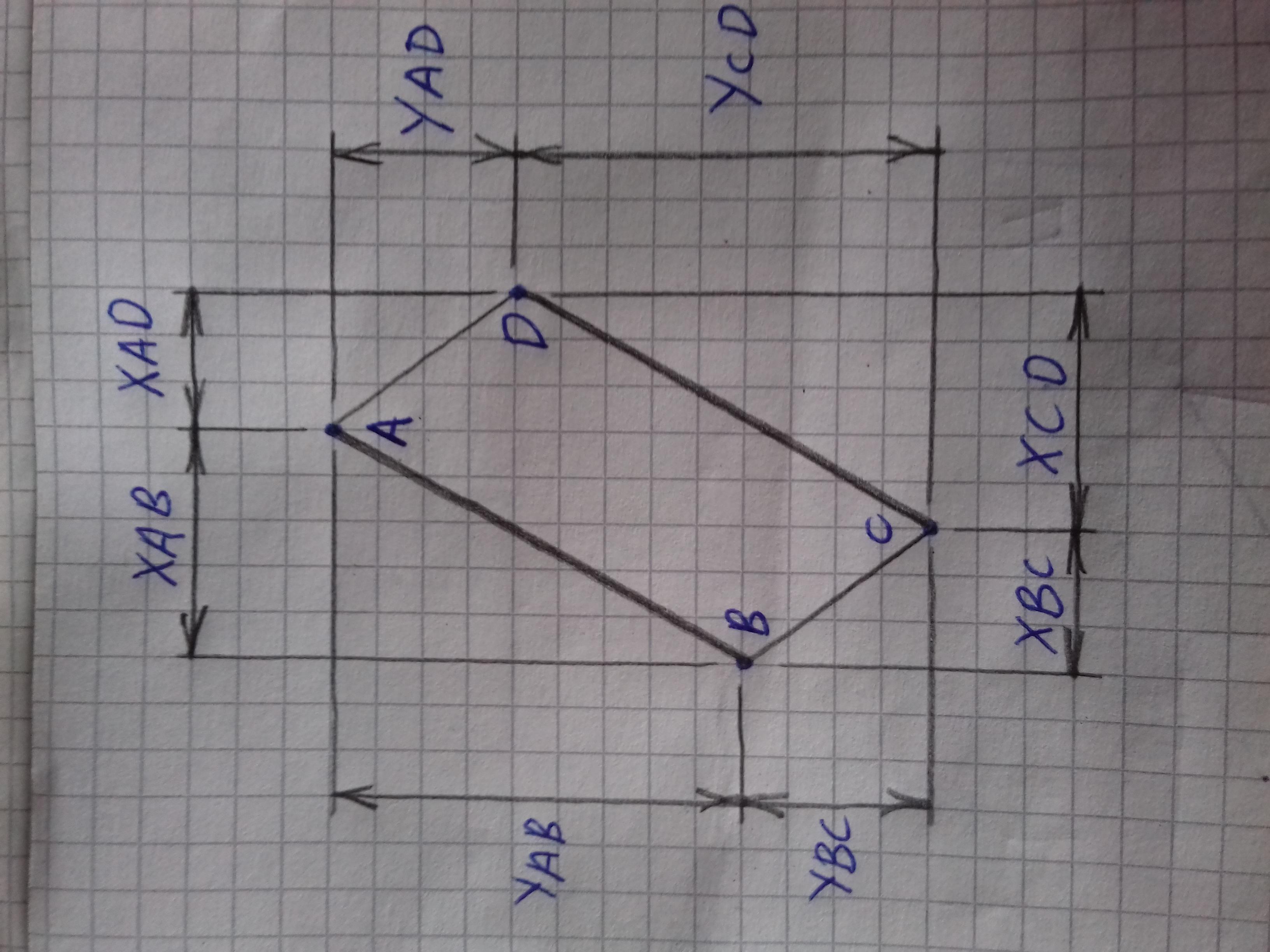 Доведемо, що різниця координат Х та У між крапками В-С та А-D рівні ( ХВС = ХАD, УВС = УАD ).
