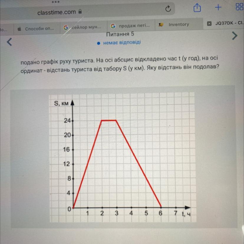 ччерез 2 години після початку руху турист був на відстані 8 км 2) турист відпочивав 3 години 3) через три години турист був за дванадцять км від дому