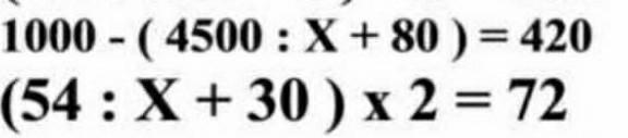 1000 - (4500 : х + 80) = 420.