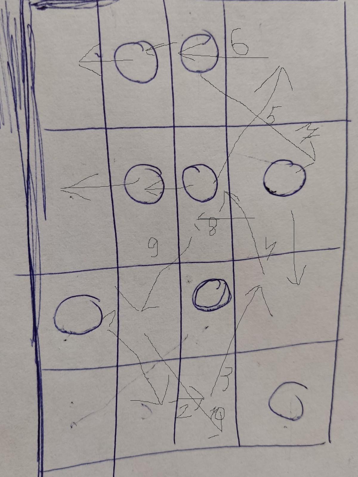 на доске расставлены фишки.За один хот можно сдвинуть любую фишку на соседнюю свободную клетку по вертекале,гаризонтале или диагонале.
