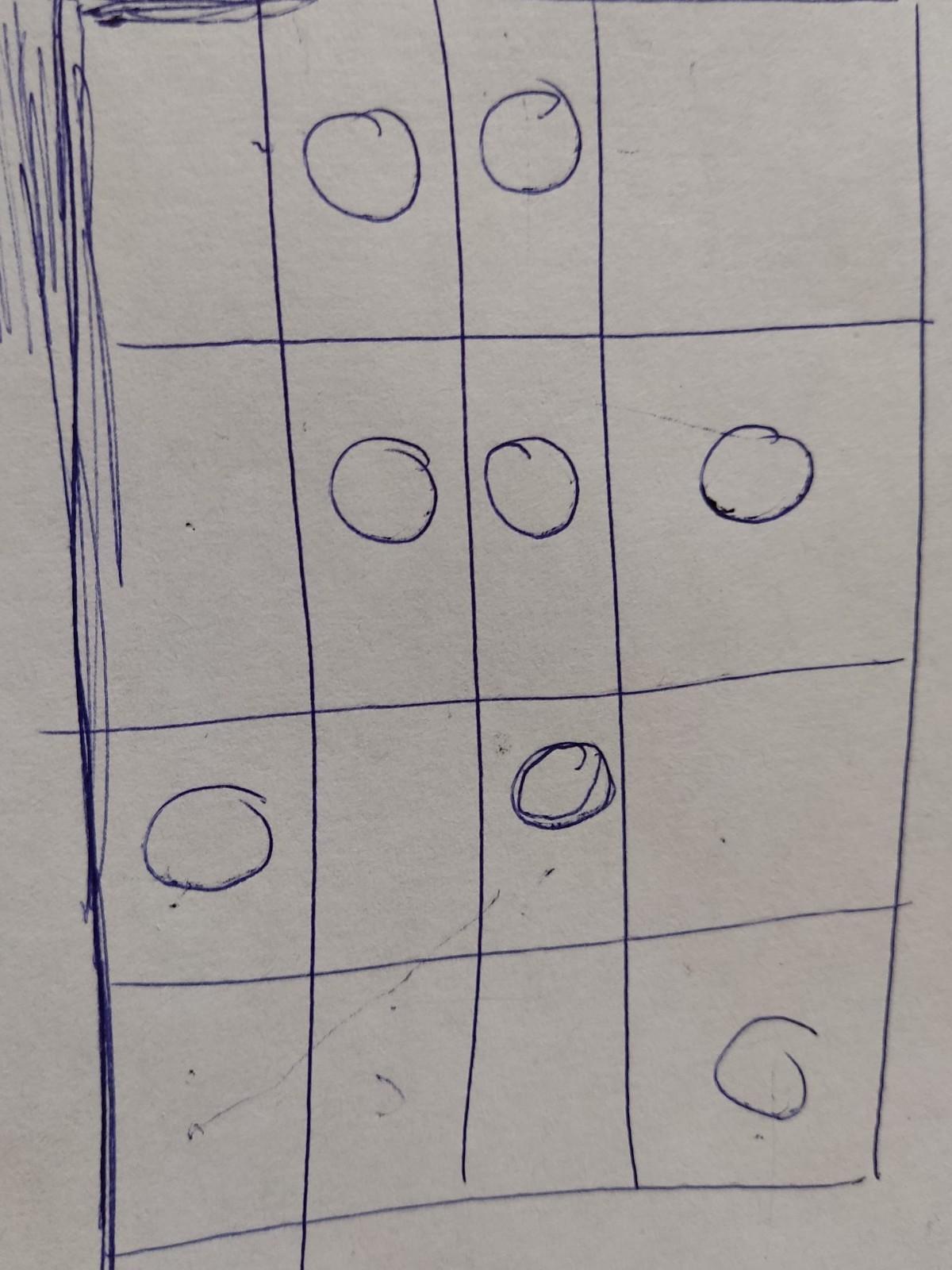 за какое наименьшее кол.во ходов можно зделать так, чтобы в каждой горизонтали и вертикали было ровно по две фишки, если по правилам разрешено двигать только одну.