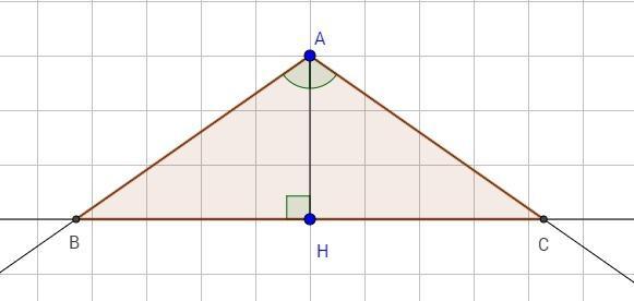 3. Строим прямую ⊥ АН, проходящую через точку Н. Точки пересечения построенных лучей и прямой будут двумя оставшимися вершинами треугольника (точки В и С на рисунке).