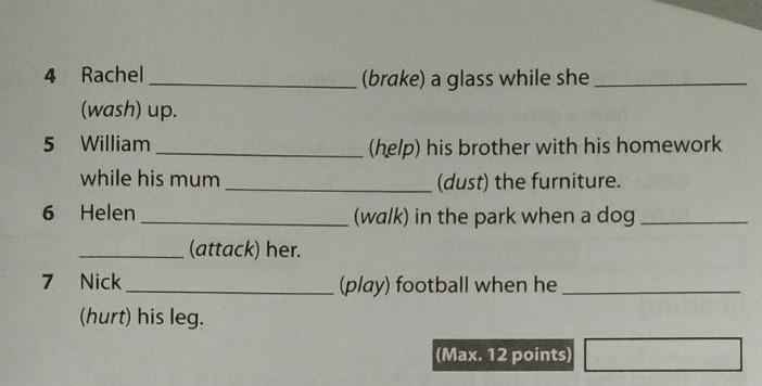 5) William was helping his brother with homework while his mum was dusting the furniture