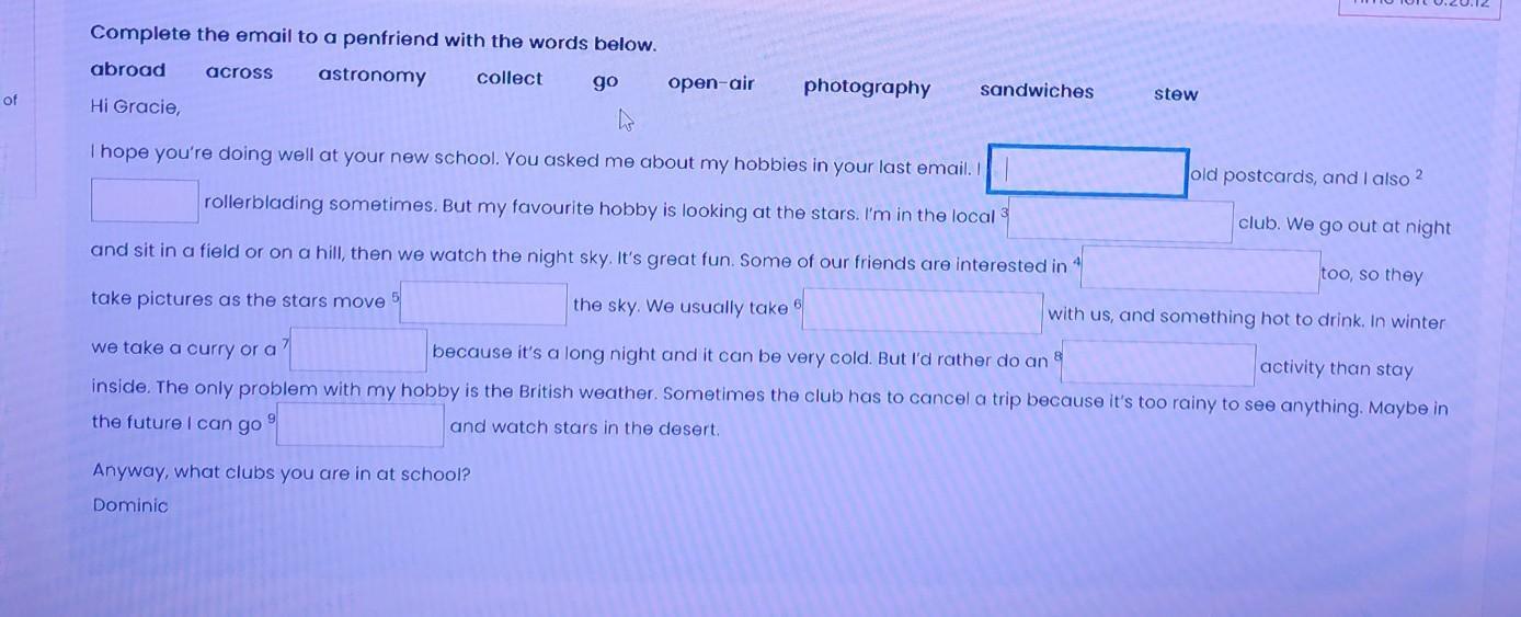 collect, go, astronomy, photography, across, sandwiches, stew, open air, abroad