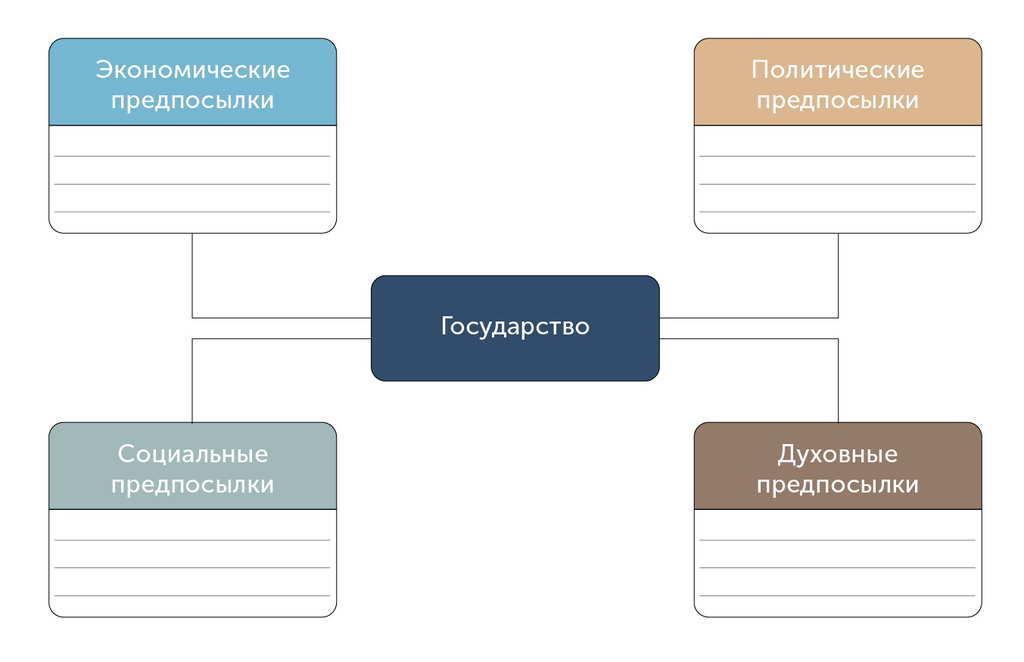 Заполните схему «Образование Древнерусского государства». Сформулируйте не менее двух предпосылок для каждого из направлений.