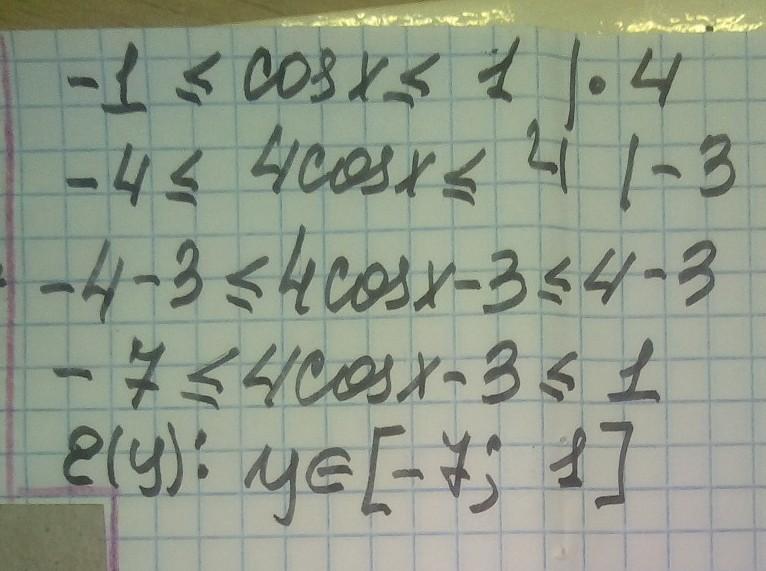Знайдіть множину значень функцій y = 4 cos x-3