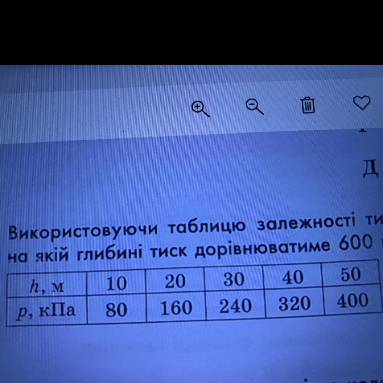 на якій глибині тиск дорівнюватиме 600 кПа.