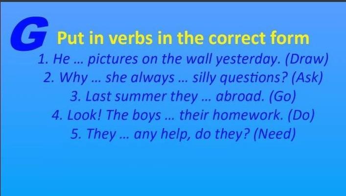 Смотри просто смотри на время и пиши правильную форму глагола.