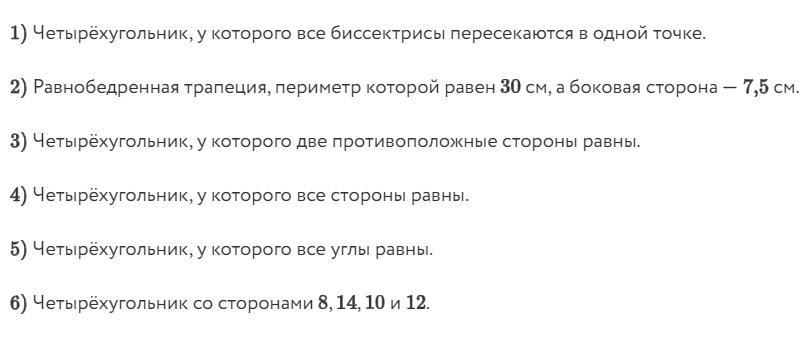 О каких из следующих четырехугольников можно точно сказать, что существует вписанная в них окружность?