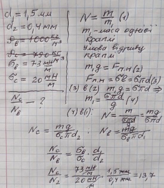 Відповідь: кількість крапель спирту у 13,7 рази більша