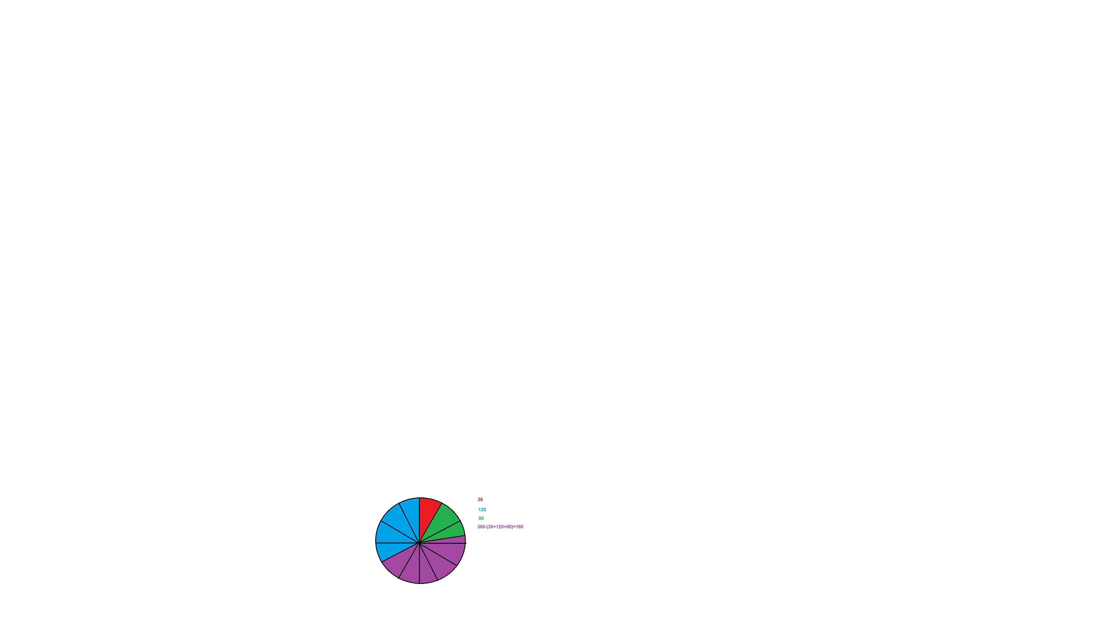 3. Разделите круг на секторы так, чтобы углы трех секторов были равны 30, 120 и 50 градусов. Закрасьте эти три сектора разными цветами. Вычислите угол незакрашенного сектора. 3 б. 2 ВАРИАНТ