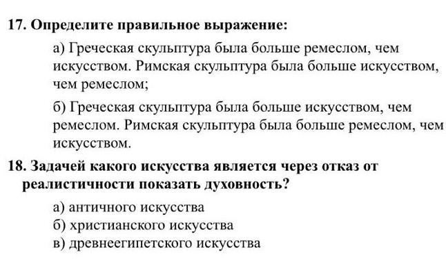 ПОМОГИТЕ ПОЖАЛУЙСТА СРОЧНО!!!! Это история исскуств, нужны ответы на вопросы 17. и 18.