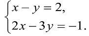 х=2+у , 2*(2+у)-3у=-1 , 4+2у-3у=-1 , -у=-1-4 , у=5 , х=2+5 , х=7